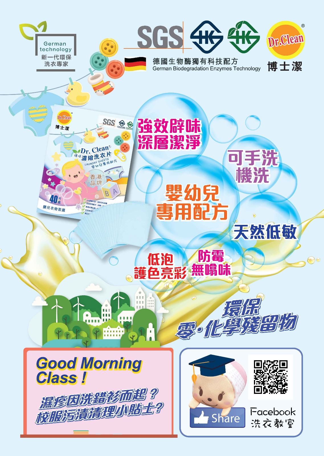 近年,氣候變化問題嚴重,為了讓下一代有更舒適的生活環境,為環保出一份力是很重要的。產品來自致力成為香港新一代環保洗衣專家的「博士潔」,一直努力研發及生產以天然成分為本的產品。「博士潔洗衣片」更榮獲 SGS 國際測試檢定認證、ISO 9001:2015國際品質管理系統認證及香港綠色標誌及香港安全標誌認可,以滿足客戶提升綠色環保家居健康生活的質素。